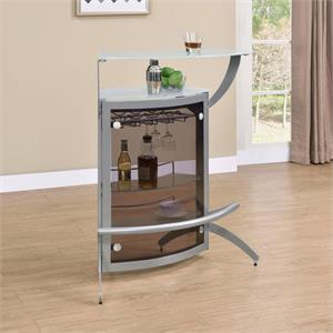 - Contemporary bar unit showcases a curved chic design with metal frame in silver finish