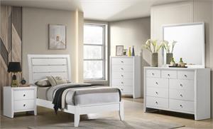 Contemporary style fits various decors. 2-toned drawer interiors with strong English dovetail construction . Sanded drawer bottoms protect clothing and other items. Kenlin metal center drawer glides will not buckle with humidity changes . Dustproof bottoms seal your case and give added strength .